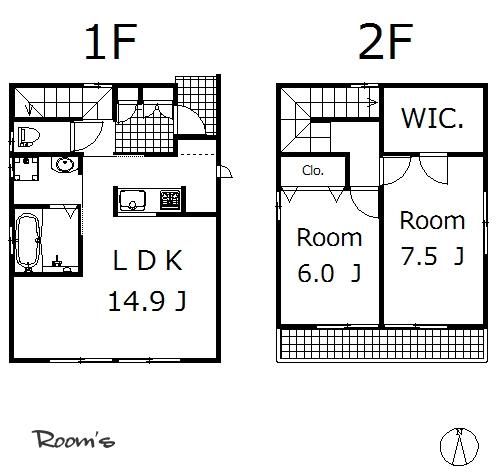 2015年12月築の2階建ての一戸建てで、お部屋は2階建ての1階部分です。