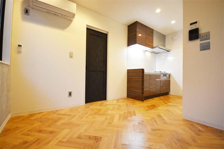 前橋市前箱田町のデザイナーズアパートメントBarrack(バラック)ブルックリンスタイル&インダストリアルなデザインが特徴的な1LDKの賃貸アパートメント。2階角部屋。エアコン全室ネットも無料。インダストリアルな空間に良く似合うヘリンボーン床を採用。こだわり抜いたデザインをぜひご覧ください。