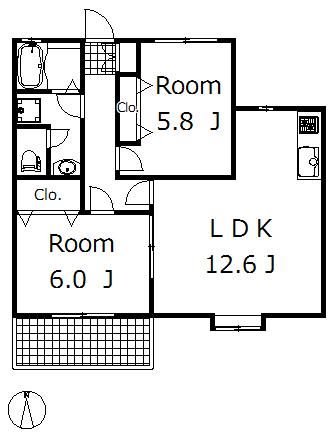 群馬県高崎市貝沢町492-2【JR両毛線 高崎問屋町駅徒歩9分】にある2LDK賃貸マンションです。